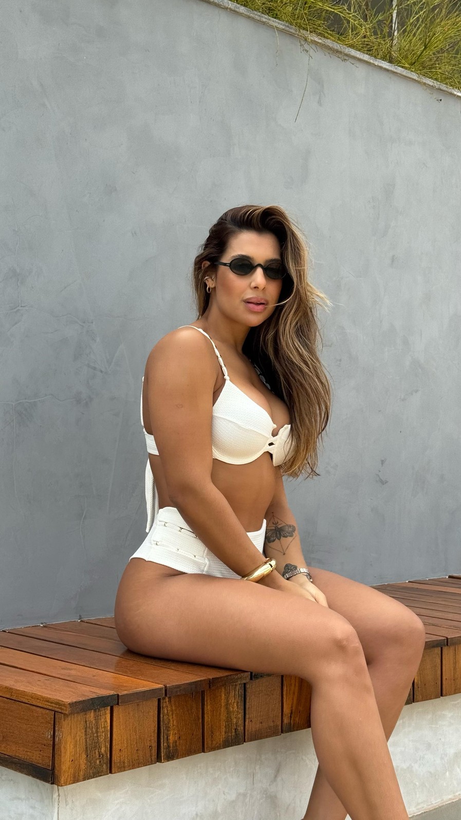 O Conjunto Aro Retrô Sofie com Hot Pants Luz na cor Off White combina sofisticação, conforto e