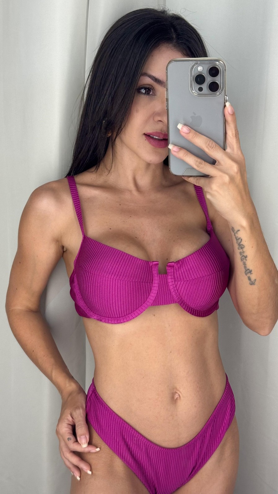 Aro retrô, top com ótima sustentação e extremamente confortável, o top possui bojo removível e alças reguláveis com metais inoxidáveis.
