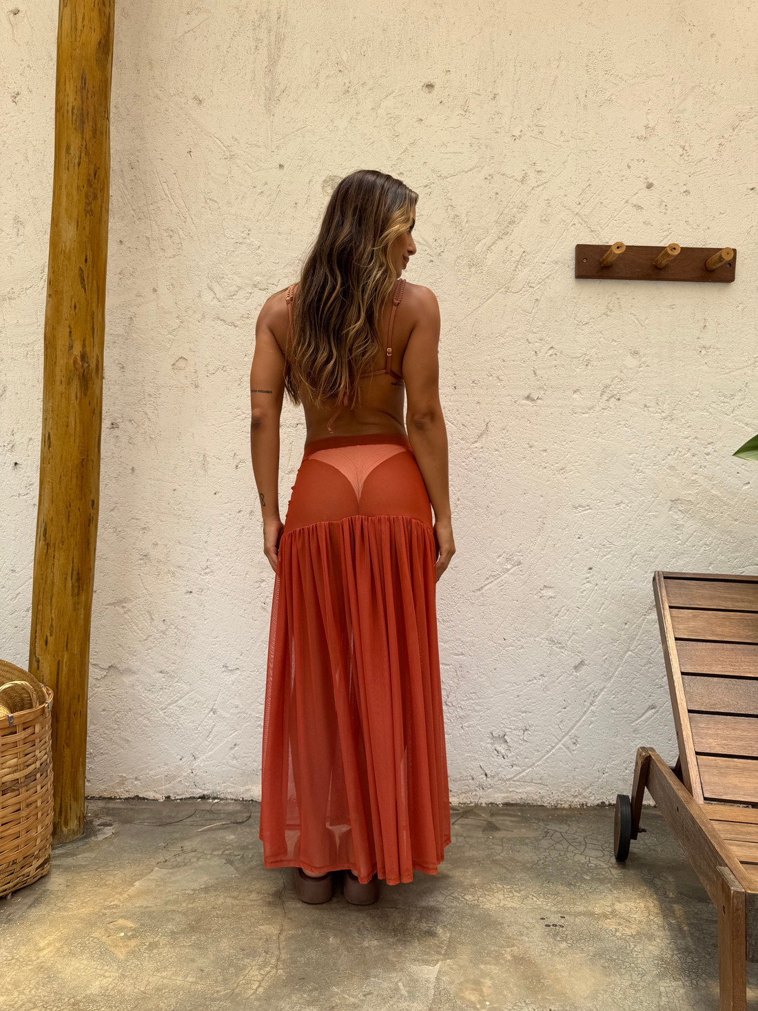 A Saia de Tule – Terra Cota é a escolha ideal para quem busca estilo, elegância e um toque moderno na moda praia. Confeccionada em tule leve e fluido, ela oferece transparência delicada e movimento natural, criando um visual sofisticado e cheio de personalidade.