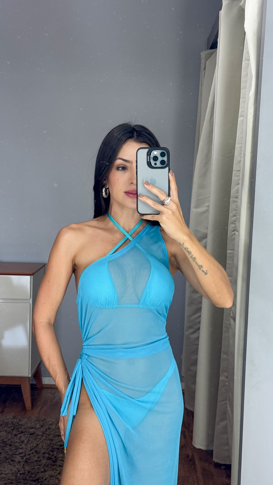 A cor atlantis traz um tom vibrante e contemporâneo, destacando-se em qualquer produção e combinando facilmente com biquínis ou maiôs de tons neutros, claros ou contrastantes. Seu comprimento longo valoriza a silhueta e oferece cobertura ideal, garantindo um visual elegante e confiante.